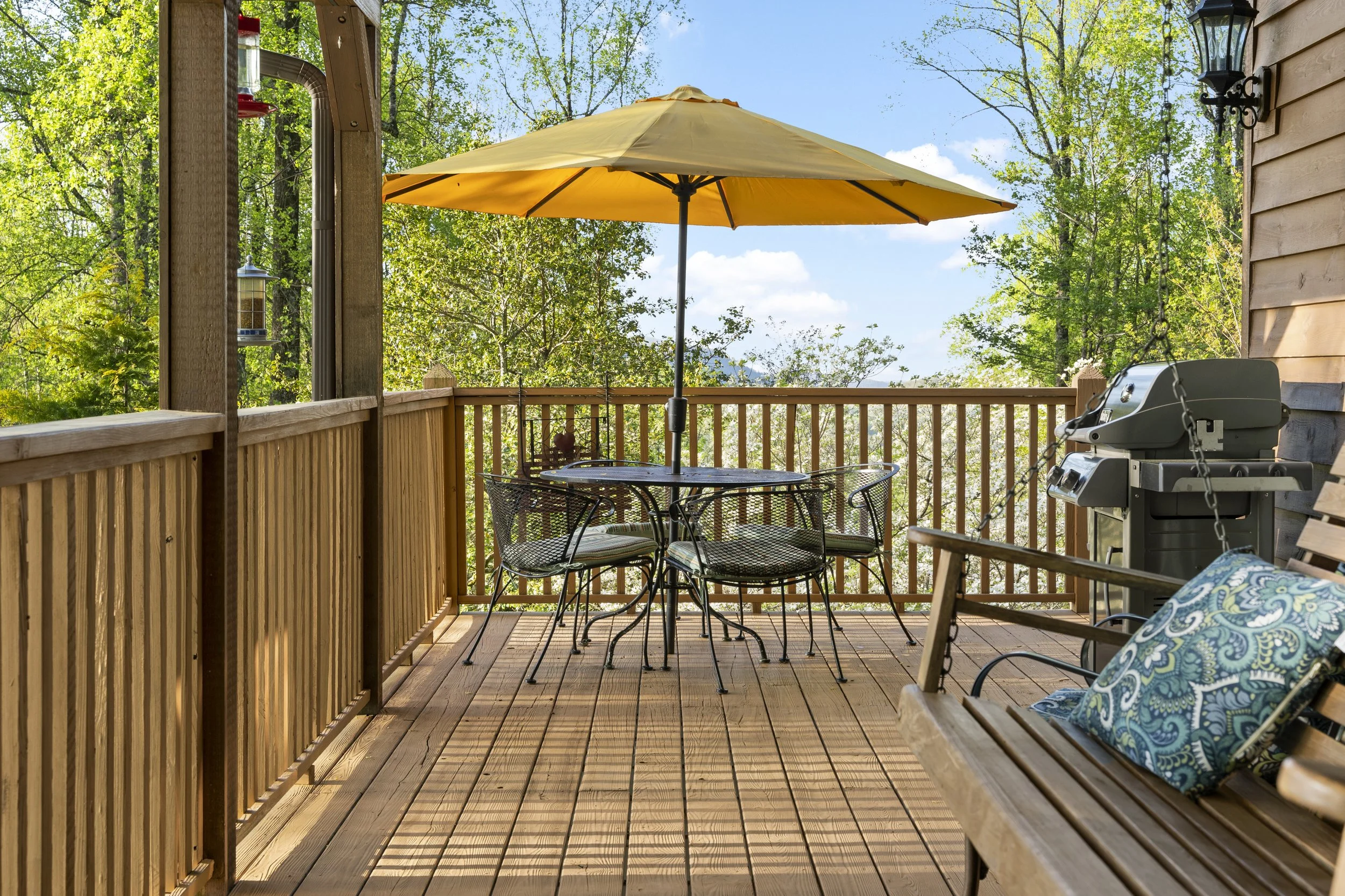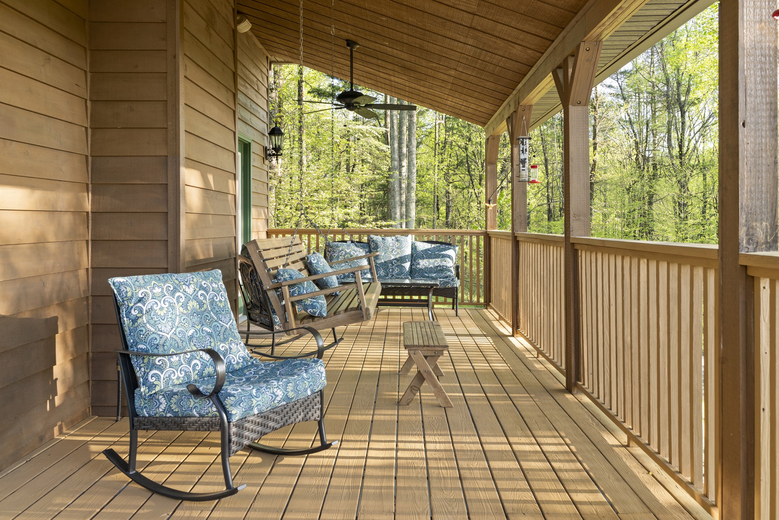 This pet friendly, spacious, environmentally conscious, comfortable 2 bedroom, 2 bath log cabin style home has wrap around porches, plenty of outdoor seating, a swing, a fenced in yard and beautiful views of Headwaters State Forest while you are entertained by the many birds and hummingbirds. It has a fully stocked kitchen, new GE stainless appliances, central heat and air, 2 new king beds, gas log fireplace, bike washing area, Internet, fire sticks on 2 TVs and a comfortable feeling. The newly fenced in yard has a flagstone path with flowers in season and a sitting area that has a gorgeous view so you can enjoy the yard while your children and dogs play. We have recently added a new Made in USA Ohio Flame fire pit so you can have an outside fire and enjoy the stars inside the fenced in yard .This is the perfect mountain retreat at 3200' elevation to access so many things to do in the area and then to come back to your "home away from home ".